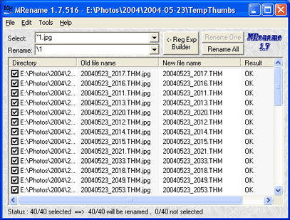 Another program that I previously used extensively was MRename. It, too, has full pattern-match and substring substitution (regex) capability and it installs a context menu into Windows XP Explorer. So, while it is one of the more powerful free renaming programs out there, it is only really suitable for advanced users who are familiar with regex.